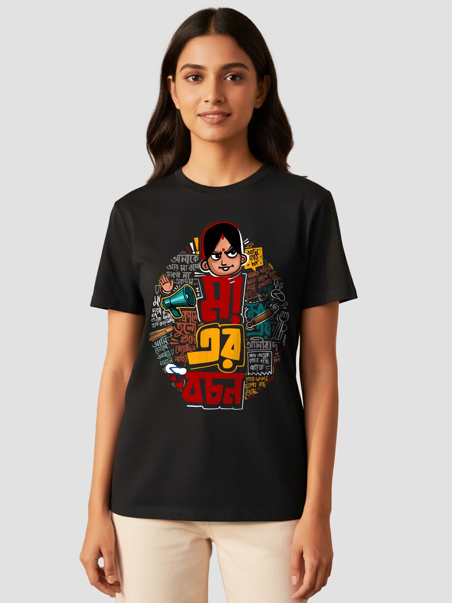Celebrate Bengali moms’ timeless wisdom with our Maa er Bochon T-Shirts. Funny, emotional, and relatable quotes straight from mom, printed in style